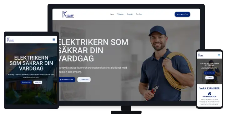 En modern och användarvänlig hemsida framtagen för Kvarnby Elservice, med fokus på tydlighet, förtroende och enkel kontakt för nya kunder.